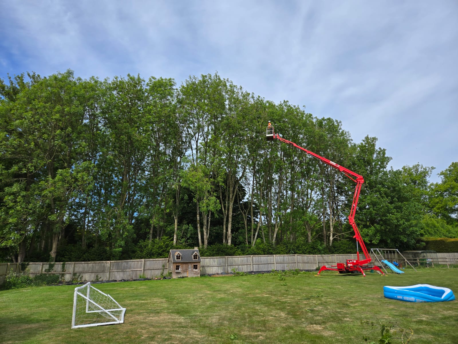 The Spider MEWP is proving its worth, being able to access a rear garden through a narrow gateway and still provide 11m outreach and 23m lift.