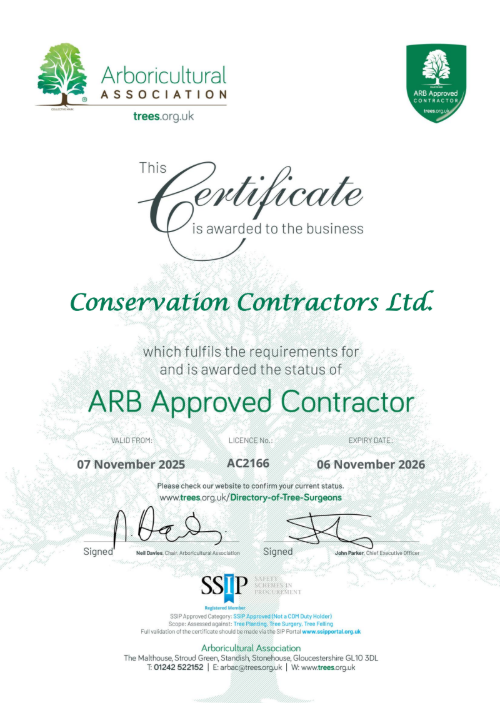In essence, choosing an ArbAC contractor gives you the dual assurance of a specialist tree care accreditation (ArbAC) and alignment with the national health & safety standard (SSIP).